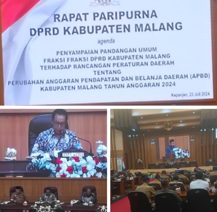IKNews, Malang – Dewan Perwakilan Rakyat Daerah (DPRD) Kabupaten Malang mengadakan Rapat Paripurna dengan agenda Penyampaian Pandangan Umum Fraksi-Fraksi terhadap Rancangan Peraturan Daerah tentang Perubahan Anggaran Pendapatan dan Belanja Daerah (APBD) Kabupaten Malang Tahun Anggaran 2024. Rapat ini berlangsung pada Selasa (23/7/2024) di Ruang Paripurna DPRD Kabupaten Malang.