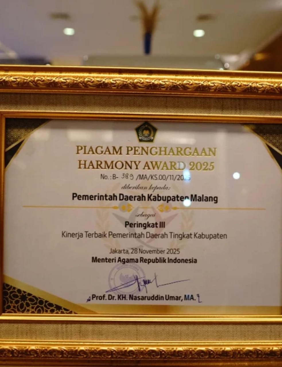 Kabupaten Malang Rebut Peringkat III Harmony Award 2025