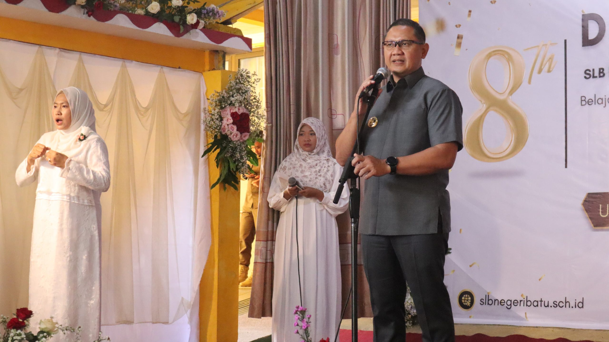 IKNews, KOTA BATU – Memperingati Dies Natalis Sekolah Luar Biasa Negeri (SLBN) Kota Batu ke-8, Pj. Wali Kota Batu yang juga Kepala Dinas Pendidikan Provinsi Jawa Timur, Aries Agung Paewai, meresmikan ruang kelas baru di SLBN Kota Batu, Selasa (20/2/2024).