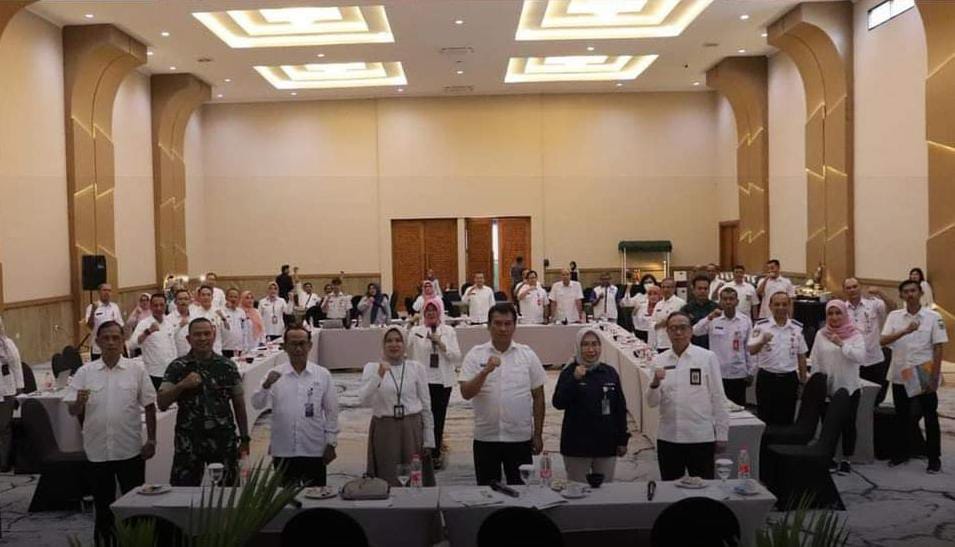 Gambar. Sekretaris Daerah Kota Batu, Zadim Efisiensi dan Tim TPID bersama stakeholder terkait menggelar rakor. (24/2/24).