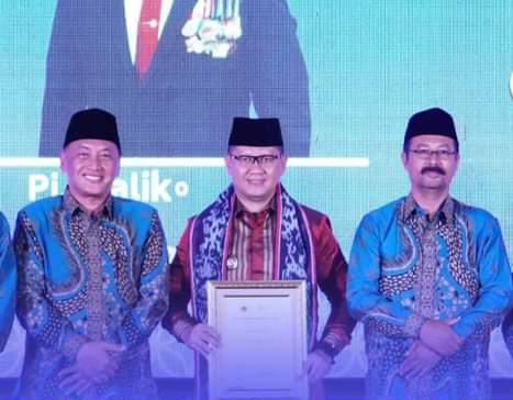 Pj. Wali Kota Batu, Aries Agung Paewai, turut menerima penghargaan sebagai Mitra Utama Pemberdayaan Umat Beragama.