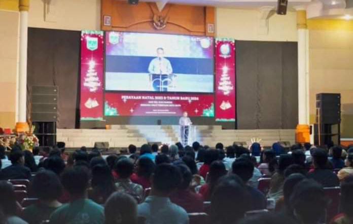 IKNews, KOTA BATU – Sekda Kota Batu, Zadim Efisiensi, menghadiri perayaan Natal dan Tahun Baru yang diselenggarakan oleh Badan Kerja Sama Gerejawi (BKSG) di Auditorium Beth Sean Sekolah Alkitab Batu di Jalan Ir. Soekarno, Desa Beji, Senin (22/1/24).