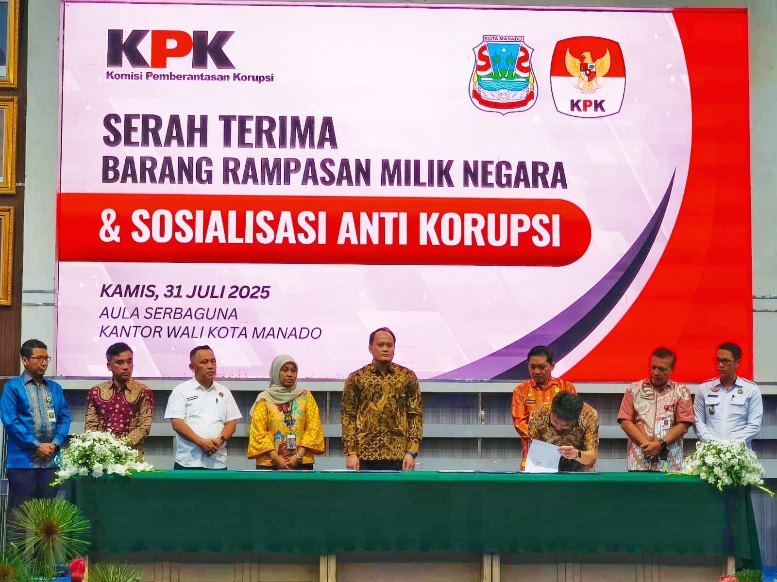 IKNews, MANADO – Sebagai bagian dari upaya optimalisasi pemulihan aset hasil tindak pidana korupsi, Komisi Pemberantasan Korupsi (KPK) menyerahkan barang rampasan negara ke Pemerintah kota Manado kamis (38/7/25) di gedung Serba Guna pemkot Manado.