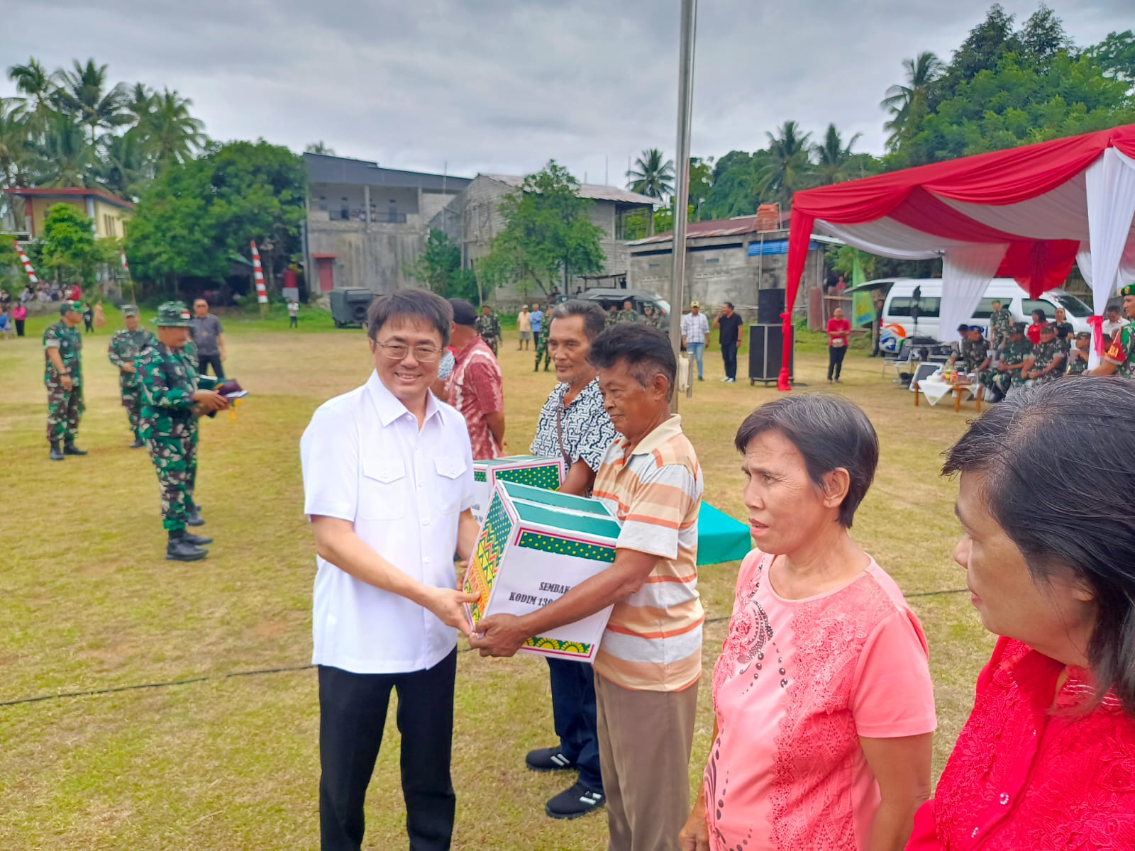 Selain menghadiri upacara, Wali Kota juga menyerahkan bantuan sembako kepada masyarakat dan Piagam Penghargaan kepada pemilik lahan yang mendukung pelaksanaan program TMMD.