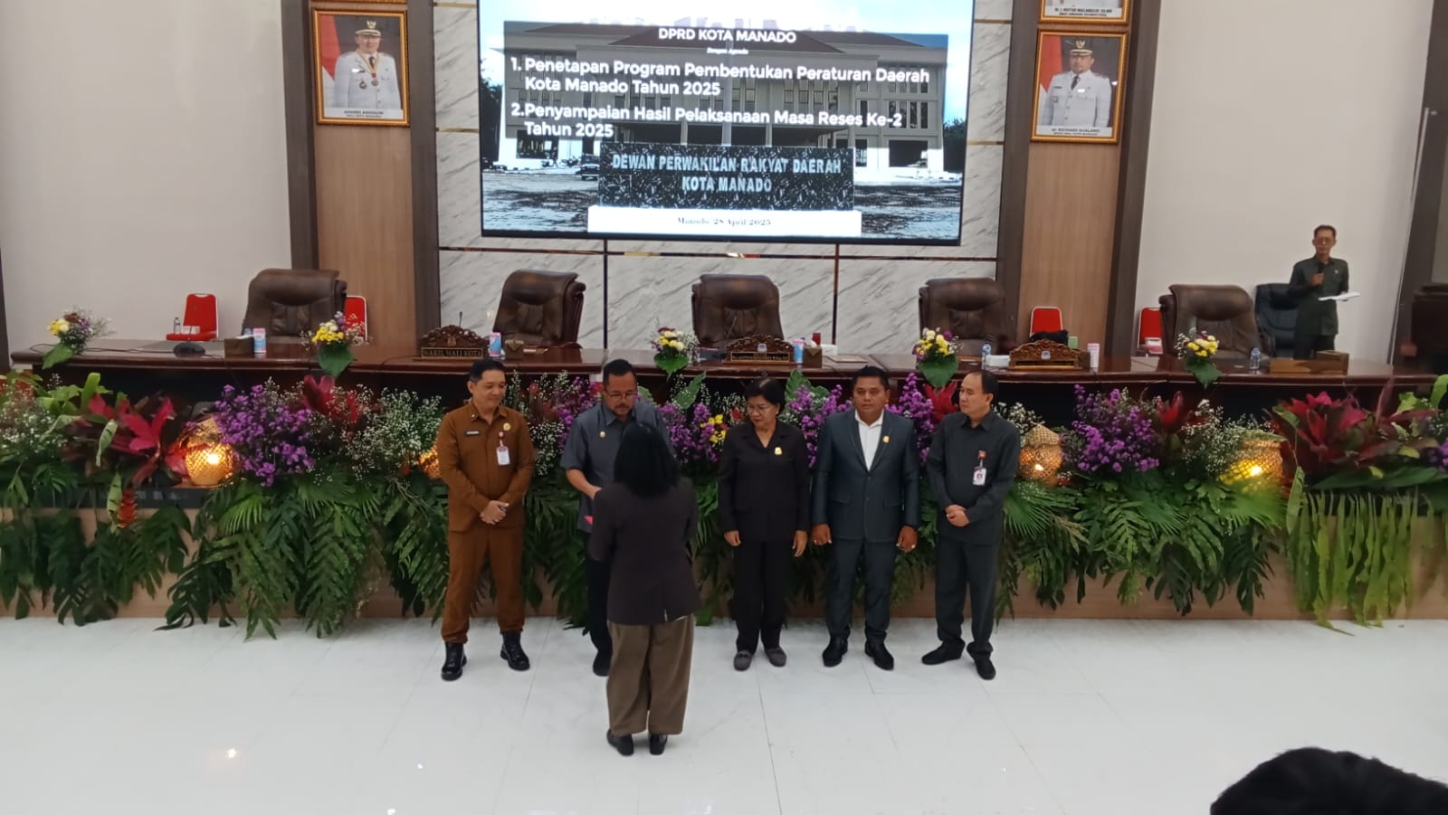 Rapat Paripurna dipimpin Ketua DPRD Kota Manado, Ibu Dra Aaltje Dondokambey M.Kes Apt, dan dihadiri 34 Anggota DPRD, Forkopimda serta Kepala Perangkat Daerah Kota Manado.