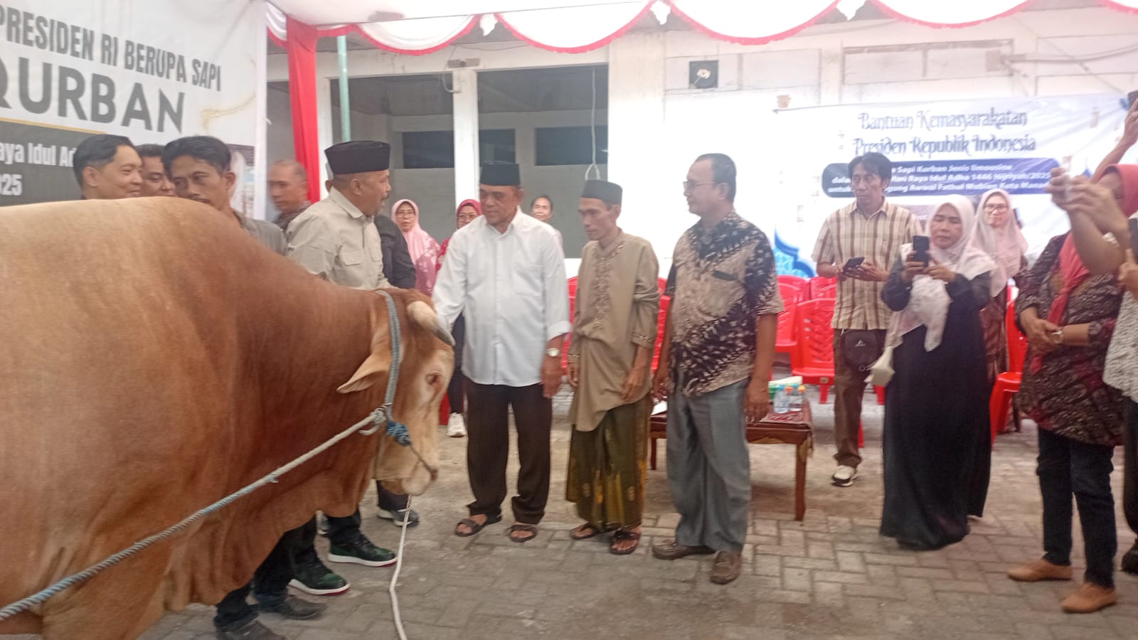 IKNews, MANADO – Wakil Walikota Manado dr. Sualang siang tadi (5/6/25) menyerahkan bantuan Hewan Kurban di Masjid Awwal Agung Fathul Mubien dalam menyongsong Hari Raya Idul Adha 1446 H yang jatuh besok hari.