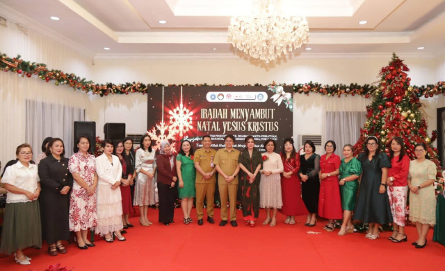 IKNews, MANADO – Pemberdayaan dan Kesejahteraan Keluarga (PKK) dan Dharma Wanita Persatuan Kota Manado menggelar Ibadah Natal 2025 yang dihadiri langsung oleh, Wali Kota Manado, Andrei Angouw dan Ketua Tim Penggerak PKK Kota Manado, Irene Golda Angouw Pinontoan yang bertempat di Rumah Dinas Walikota di Bumi Beringin, Senin (15/12/2025).