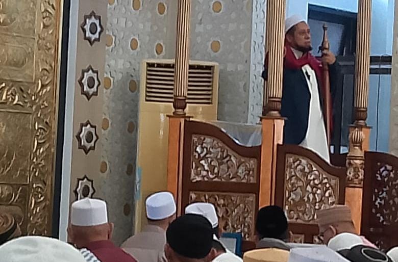 KH,Yaser Bachmid bertindak sebagai khotib menyampaikan khutbah Idul Fitri dengan judul “Menjaga Konsistensi Amallah Romadlon”.