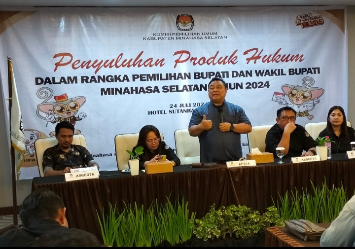 IKNews,Minsel – Bertempat di Sutanraja Hotel Amurang pada Rabu (24/7/2024), Komisi Pemilihan Umum (KPU) Kabupaten Minahasa Selatan laksanakan Penyuluhan Produk Hukum pada Pemilihan Serentak, Bupati dan Wakil Bupati Tahun 2024.