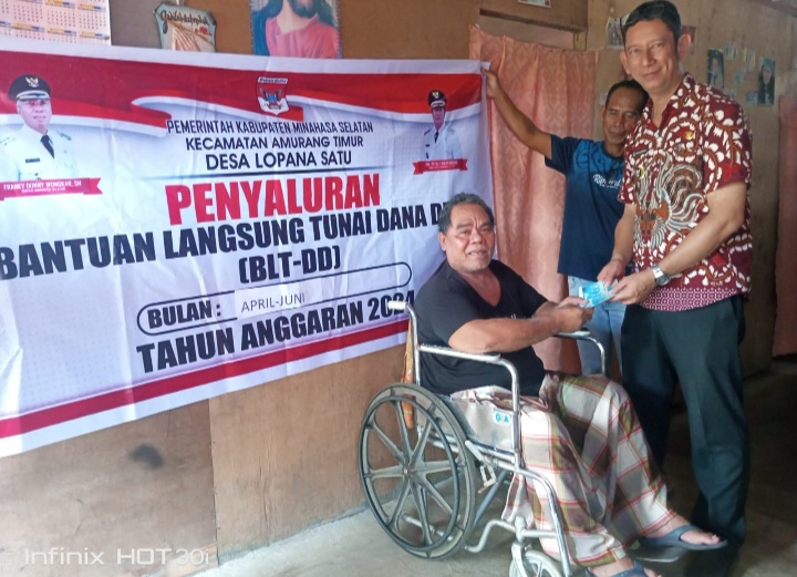Pemdes Lopana Satu Pimpinan Hukum Tua pilihan rakyat Reynold A.Maguna,AMd.TM ketika di temui mengatakan, setelah melalui tahapannya, Pengelolaan Dana Desa (DD) kami realisasikan melalui kegiatan Penyaluran BLT-DD kepada 24 KPM sesuai Kriteria (Miskin,Anggota tunggal,penyakit kronis dan difabel), bantuan ini di terima langsung oleh KPM di Balai pertemuan umum, sementara yang sakit dan tak bisa jalan di antar langsung ke rumah masing-masing penerima.