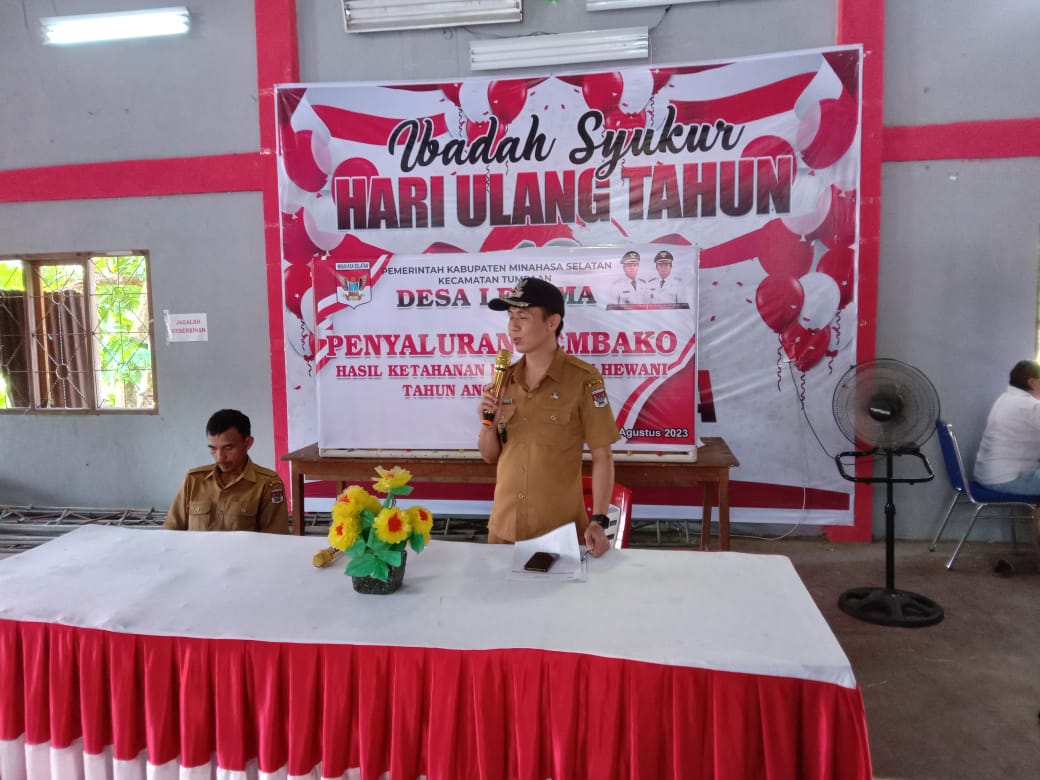 IKN,Minsel – Pemerintah Desa (Pemdes) Lelema Kecamatan Tumpaan Kabupaten Minahasa Selatan – Sulut, salurkan paket bantuan beras premium 5 kg dan minyak goreng 1 kg setiap keluarga, dengan jumlah 375 Kepala keluarga yang berada di jaga 1 sampai jaga 10, pada Selasa (15/8/2023) yang bertempat di Balai pertemuan umum.