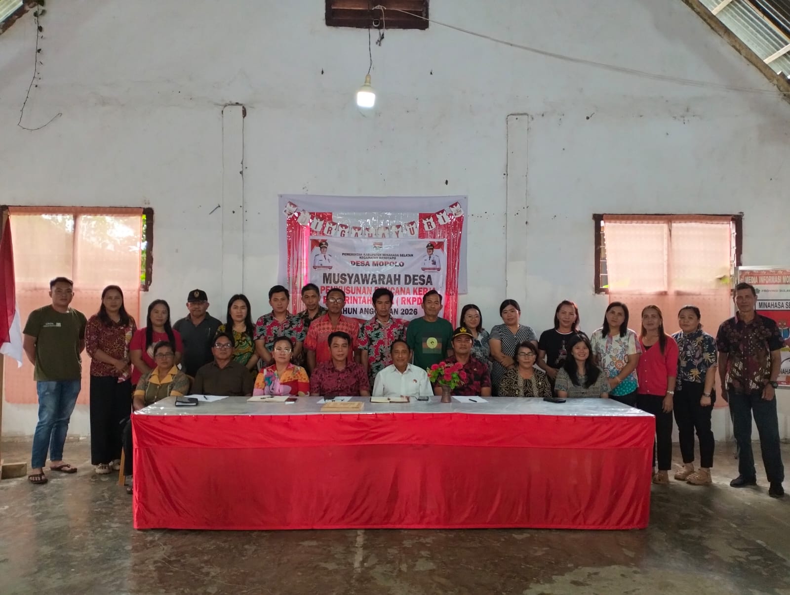 IKNews, MINAHASA SELATAN – Pemerintah Desa Mopolo bersama Badan Permusyawaratan Desa (BPD) sukses melaksanakan Musyawarah Desa (Musdes) dalam rangka penyusunan Rencana Kerja Pemerintah Desa (RKPDes) Tahun Anggaran 2026. Kegiatan ini digelar pada Kamis (7/8/2025) di Aula Balai Pertemuan Umum (BPU) Desa Mopolo, Kecamatan Ranoyapo, Kabupaten Minahasa Selatan.