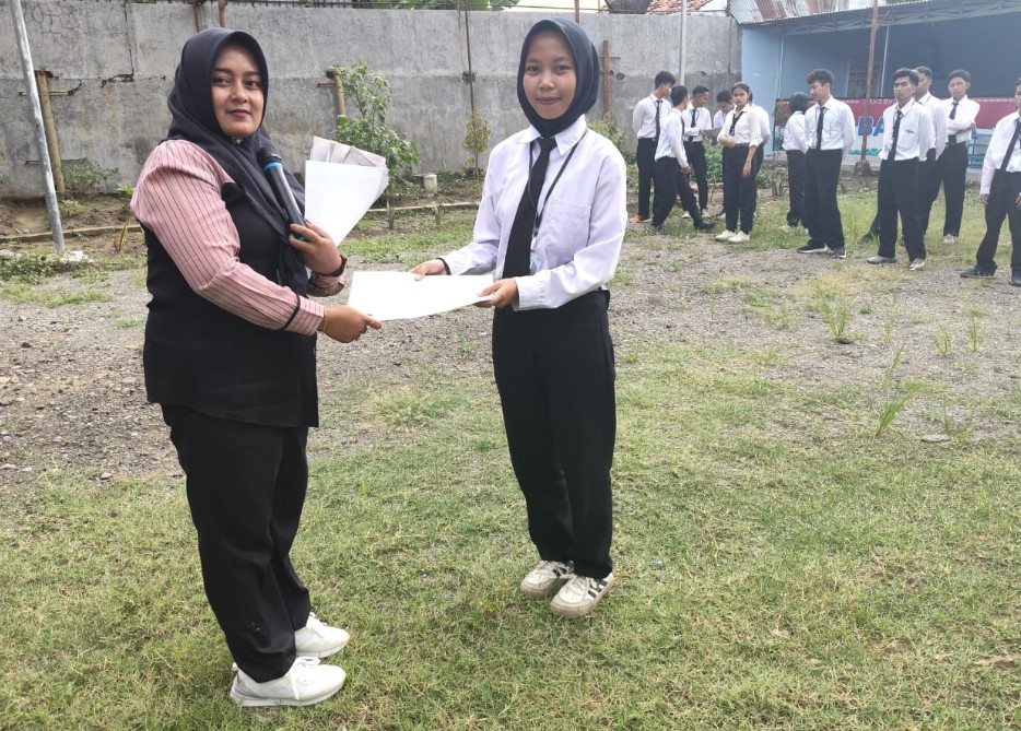 Gambar: Pembagian raport hasil ujian siswa LPK Bahtera Mitra Unggulan di Desa Dukuhturi, Senin, 30 September 2025. Evaluasi bulanan ini bertujuan memantau perkembangan belajar siswa dan memberikan apresiasi bagi yang berprestasi. Foto : Agung/IKN.