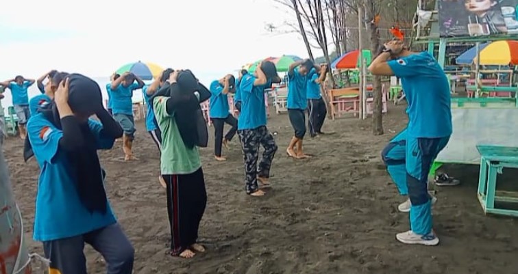 Senam di Pantai Batamsari Jadi Cara Siswa LPK SO BMU Mengasah Fisik dan Mental