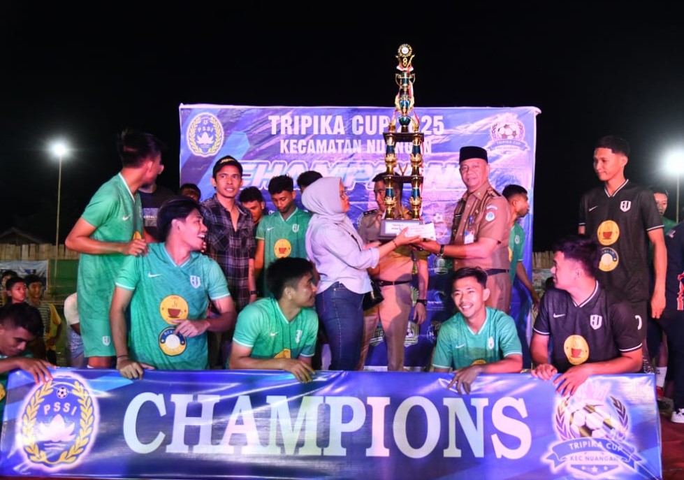 IKNews, NUANGAN — BU FC Nuangan 1 berhasil keluar sebagai juara Turnamen Tripika Cup Nuangan 2025 setelah menundukkan Gogaluman FC melalui adu penalti yang menegangkan, Senin (13/10/2025), di Lapangan Garuda Nuangan.