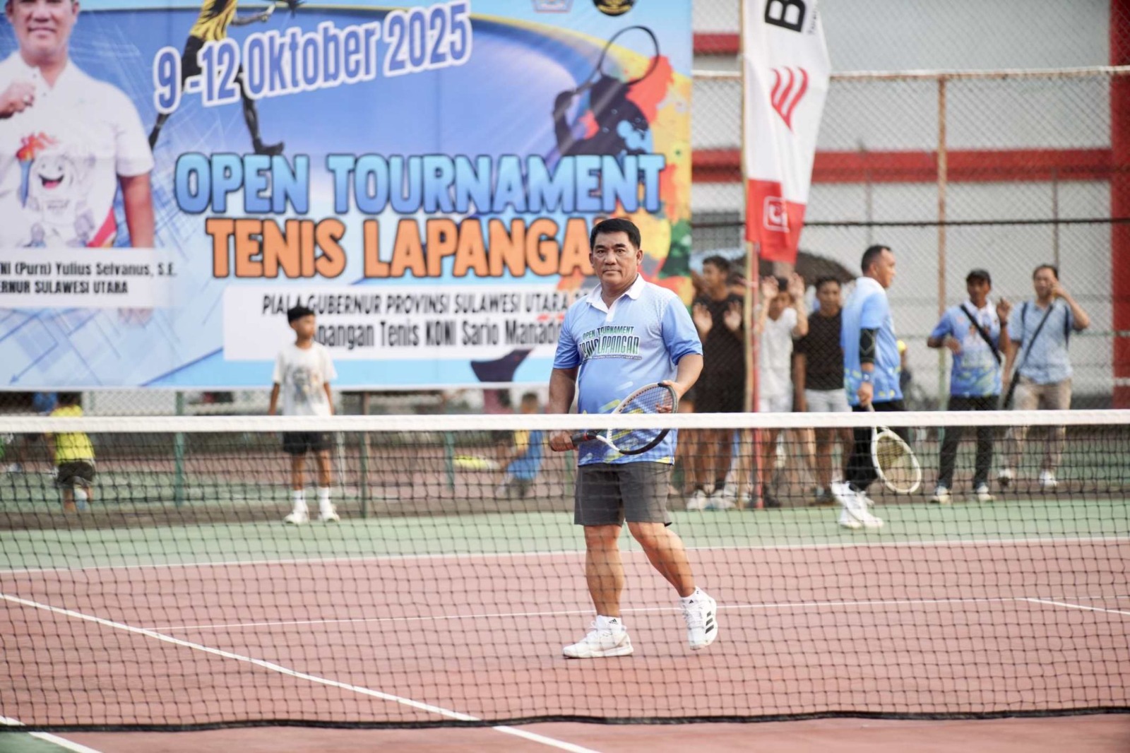 IKNews, MANADO — Suara tawa, semangat, dan derap langkah para atlet muda menggema di Lapangan Tenis KONI Manado, Kamis pagi itu. Di antara terik matahari dan sorak penonton, hadir sosok yang tak sekadar membuka turnamen, tapi juga membuka harapan: Gubernur Sulawesi Utara, Mayjen TNI (Purn) Yulius Selvanus, SE.