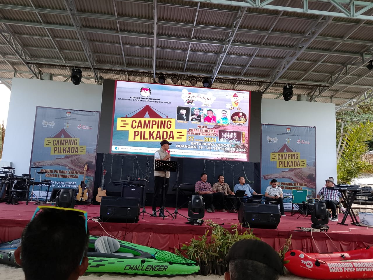 IKNews, BOLTIM – Komisi Pemilihan Umum kabupaten Bolaang Mongondow Timur (Boltim), menggelar Camping Pilkada menuju pilkada serentak ramah lingkungan bertempat wisata Batu Buaya Kecamatan Nuangan, Kamis (19/9/2024).