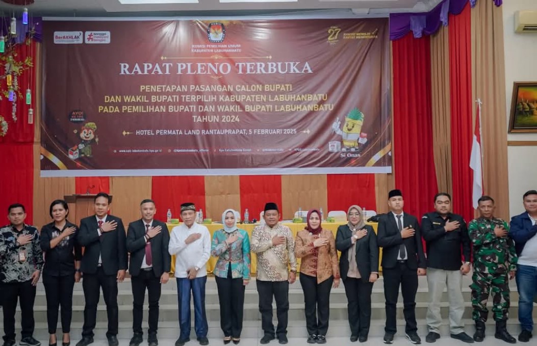 IKNews, LABUHANBATU – Komisi Pemilihan Umum (KPU) Labuhanbatu menggelar rapat pleno terbuka untuk menetapkan pasangan calon Bupati dan Wakil Bupati terpilih dalam Pilkada 2024. Kegiatan tersebut berlangsung di Hotel Permata Land Rantauprapat pada Rabu malam, 5 Februari 2025.