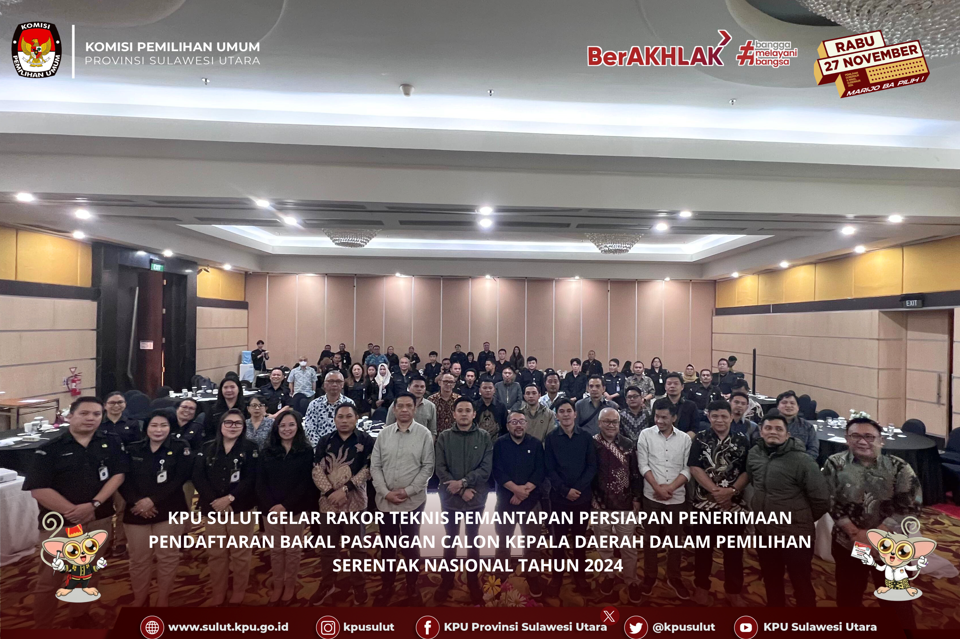IKNews-SULUT — KPU Sulut menggelar Rapat Koordinasi Teknis Pemantapan Persiapan Penerimaan Pendaftaran Bakal Pasangan Calon Gubernur dan Wakil Gubernur, Bupati dan Wakil Bupati, serta Walikota dan Wakil Walikota Dalam Pemilihan Serentak Nasional Tahun 2024. Acara ini berlangsung di Novotel Manado pada hari Rabu, 21 Agustus 2024.