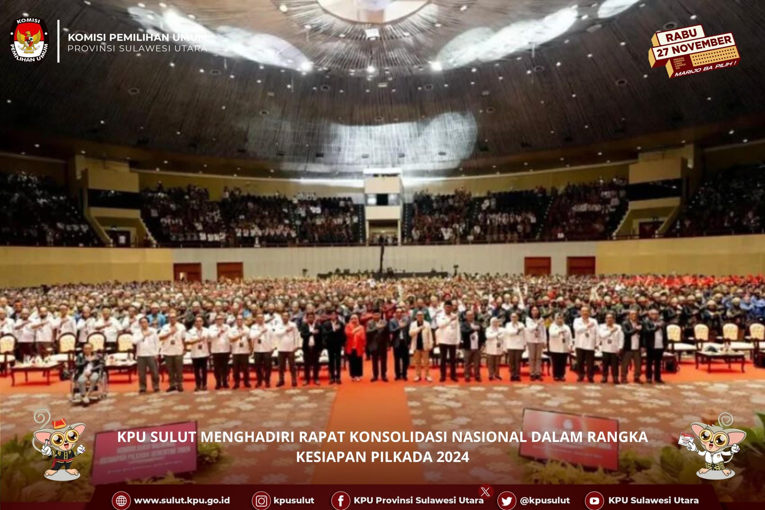 IKNews-SULUT – Ketua KPU Sulut Kenly Poluan dan Anggota KPU Sulut Meidy Tinangon, Lanny Ointu, Salman Saelangi, Awaluddin Umbola serta Plt. Sekretaris KPU Sulut Meidy Malonda, Kepala Bagian di Sekretariat KPU Sulut Carles Worotitjan dan Winda Tulangow menghadiri Rapat Konsolidasi Nasional (Rakornas) dalam rangka Kesiapan Pilkada 2024, yang berlangsung selama 2 hari, tanggal 19-20 Agustus 2024 bertempat di Jakarta Convention Center (JCC).