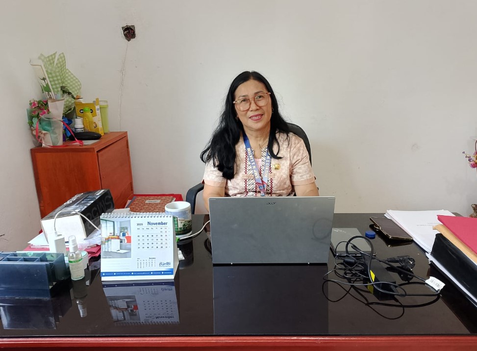 Gambar: Kepala Sekolah SMPN 1 Likupang, Juliana Pusung, S.Pd., M.Pd., saat memberikan keterangan kepada media di ruang kerjanya, Jumat, 10 Oktober 2025. Ia memaparkan berbagai capaian prestasi dan pengembangan fasilitas sekolah. Foto: Denny/IKN.