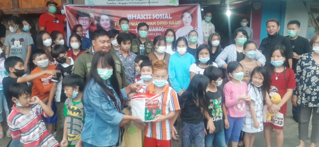 INFOKINI.NEWS- Forum Wartawan DPRD (FORWARD) Sulut menggelar kegiatan Bakti Sosial bersama 123 anak panti asuhan yang ada di 4 Kabupaten/Kota di Provinsi Sulawesi Utara, Selasa (21/12).