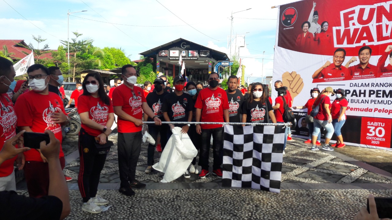 INFOKINI.NEWS- Memperingati Hari Sumpah Pemuda, 28 Oktober 2021, Dewan Pimpinan Cabang (DPC) Partai Demokrasi Indonesia Perjuangan (PDIP) se- Kota Manado, Sabtu (30/10) pagi melakukan kegiatan jalan sehat sekaligus pengumpulan sampah dari lokasi start di Taman Berkat Jalan Piere Tendean Boulevard, hingga finish di Taman Kesatuan Bangsa (TKB).