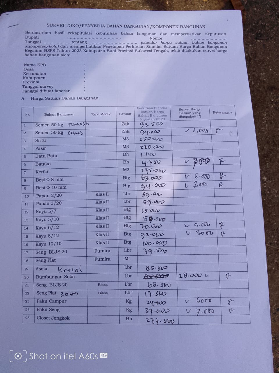 Gambar : Foto Dokumen Survei Toko Harga Yang Fantastik Tinggi, yang dimenangkan oleh oknum tertentu.