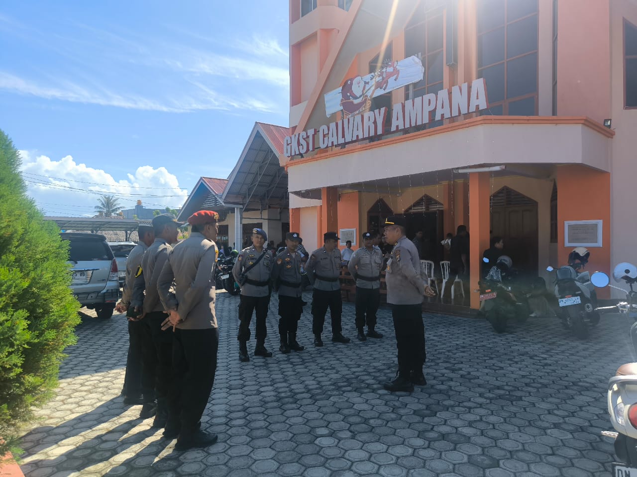 Sejak Kamis (17/04/2025), puluhan personel Polres dan Polsek mengamankan sejumlah gereja,melakukan sterilisasi sebelum ibadah,dan memonitor selama ibadah berlangsung.
