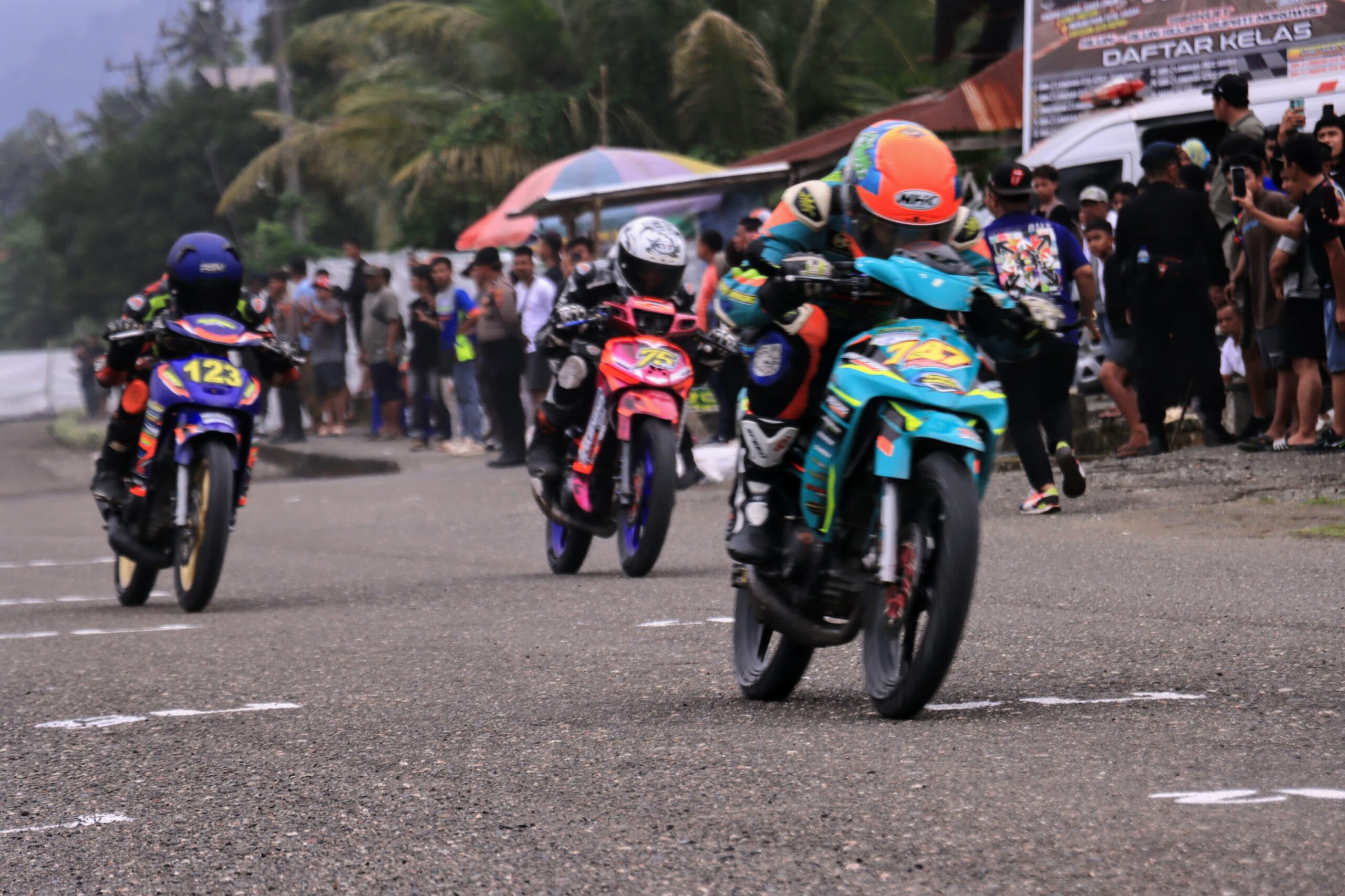 IKNwes, MORUT – Ribuan penonton memadati Rujab Bupati Morowali, Minggu (13/7/2025), menyaksikan keseruan Kejuaraan Roadrace Piala Kapolda Sulawesi Tengah Seri 3.