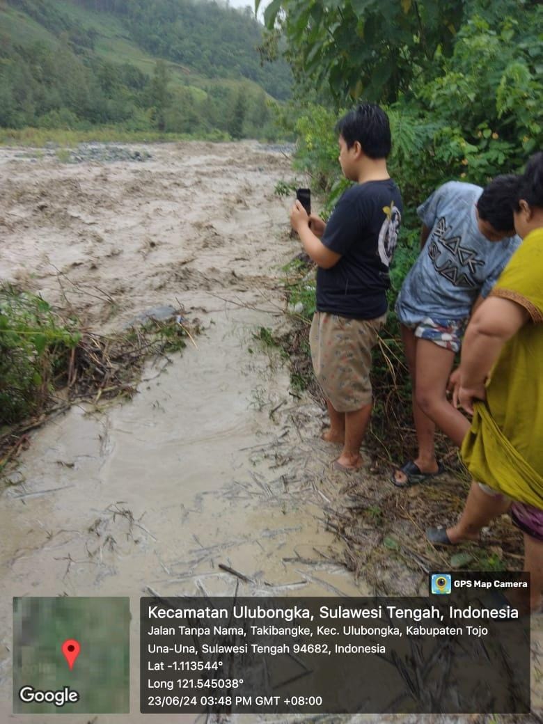 Diktahui Luapan air Banjir terjadi usai hujan deras mengguyur daerah sekitar ulubongka sejak minggu (23/6/2024)