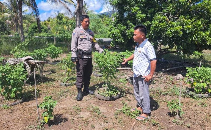 Sementara itu di Desa Tobamawu, Kecamatan Ulubongka, Bhabinkamtibmas Bripka Risman juga melakukan kunjungan ke lahan pekarangan rumahan milik warga yang saat ini telah ada tanaman rica dan terong.