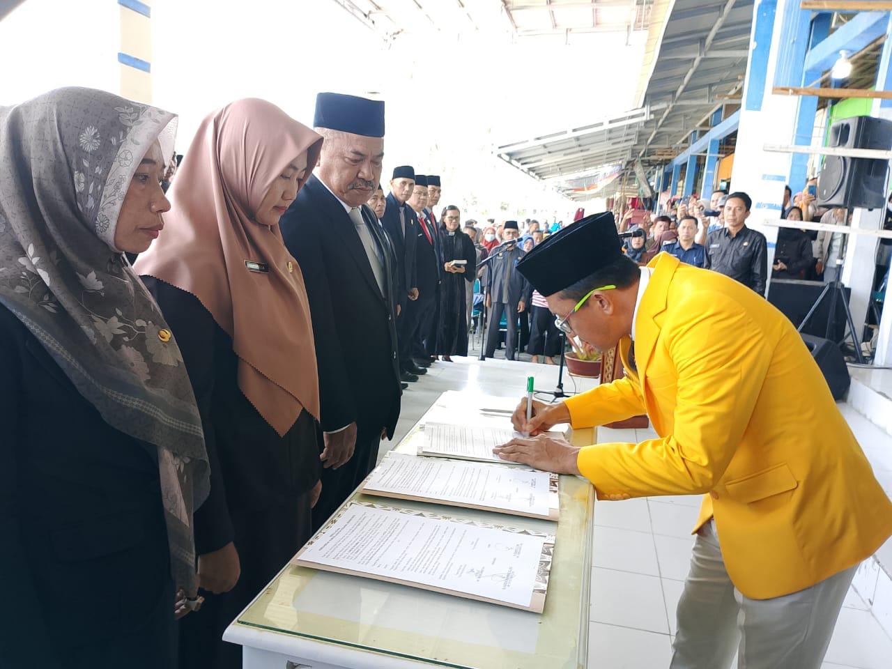 Bupati Ilham Lawidu, didampingi Wakil Bupati Hj. Surya Lapasiri dan Ketua DPRD Gusnar A. Suleman, menyampaikan alasan pemilihan pasar sebagai lokasi pelantikan. Menurutnya, pemerintah harus selalu berada di tengah masyarakat, bukan sekadar hadir dalam ruang-ruang formal.