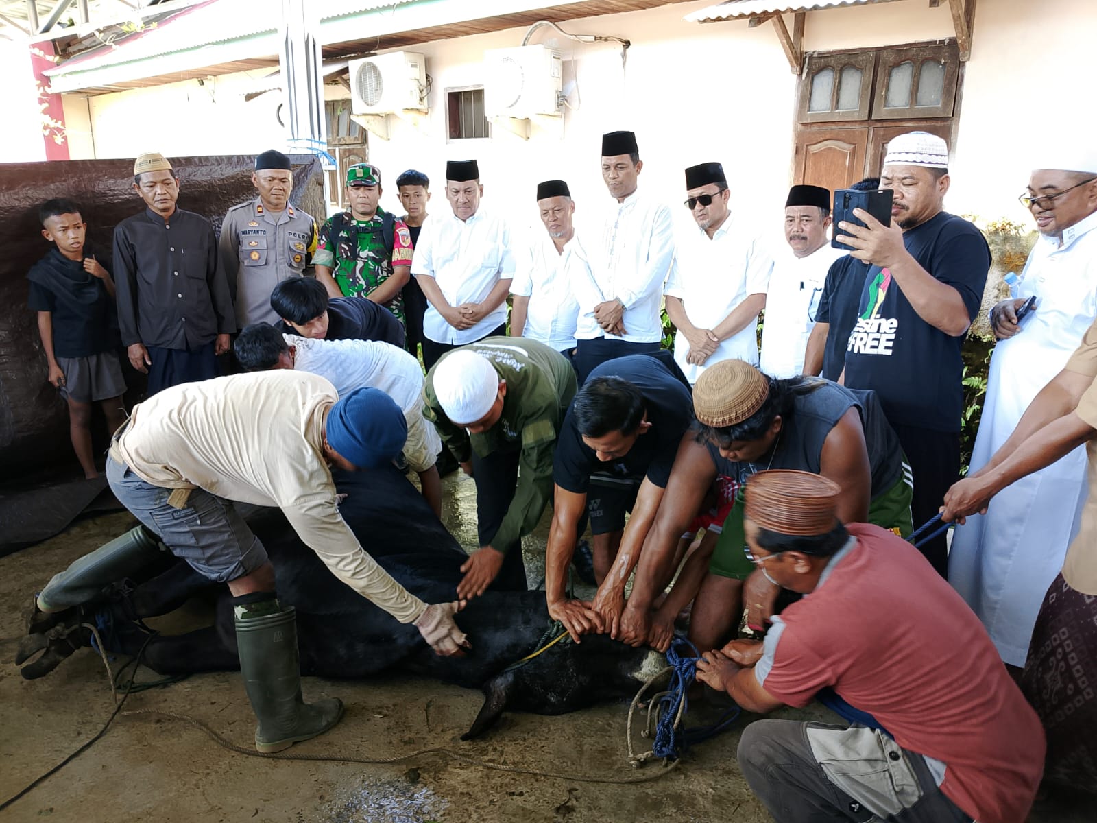 Kedua sapi tersebut diserahkan di Masjid Thamaratul Ukhuwah, Kelurahan Muara Toba, Kecamatan Ratolindo, usai sholat Jumat, 6 Juni 2025. Bantuan hewan qurban dari Presiden Prabowo ini bernilai Rp 135 juta.
