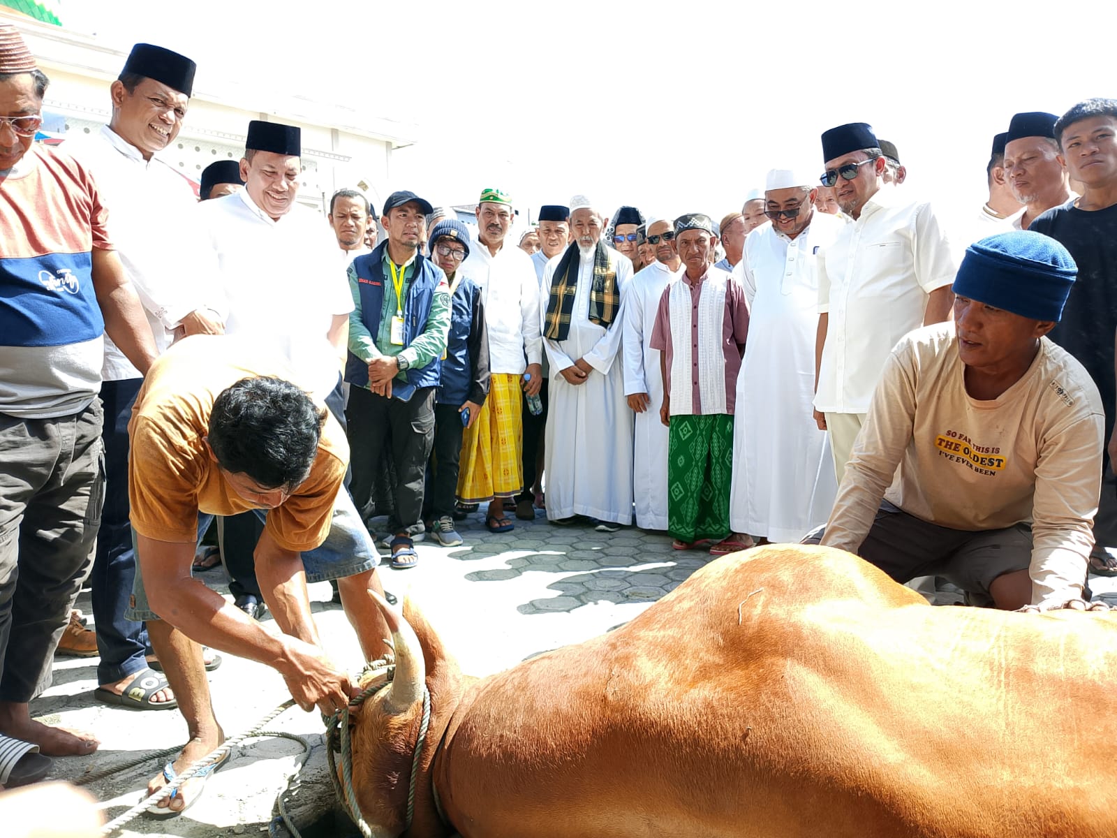 Kedua sapi tersebut diserahkan di Masjid Thamaratul Ukhuwah, Kelurahan Muara Toba, Kecamatan Ratolindo, usai sholat Jumat, 6 Juni 2025. Bantuan hewan qurban dari Presiden Prabowo ini bernilai Rp 135 juta.