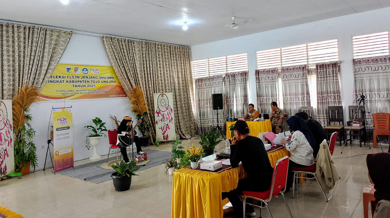 Ketua Panitia, Dra. Erni Thompa, M.Pd., menekankan FLS2N 2025 sebagai wahana mengasah kemampuan menyanyi, memainkan gitar, dan menulis, serta mengembangkan kreativitas dan ekspresi diri.