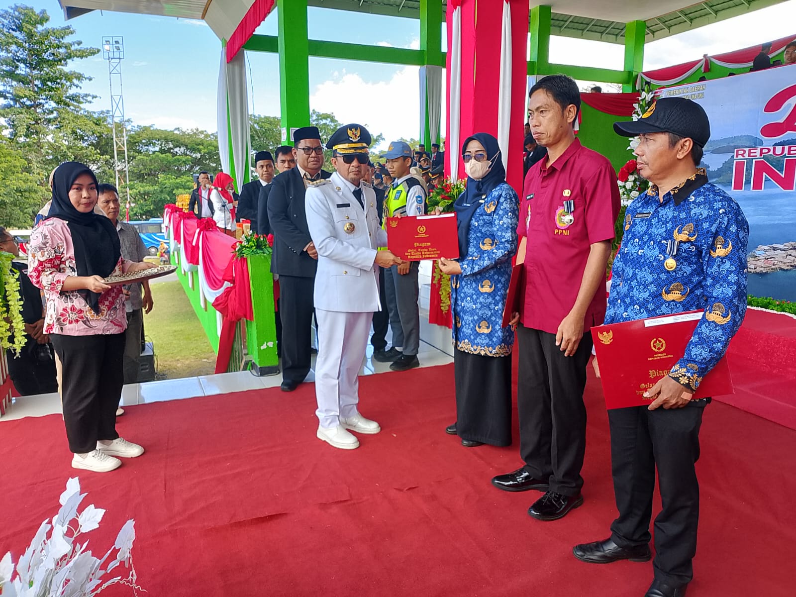 Usai upacara, Bupati Ilham Lawidu menyerahkan Piagam Satyalancana Karya Satya kepada tiga ASN atas pengabdian mereka. Wakil Bupati Hj. Surya turut menyerahkan hadiah kepada pemenang lomba desa dan kelurahan dari 12 kecamatan.