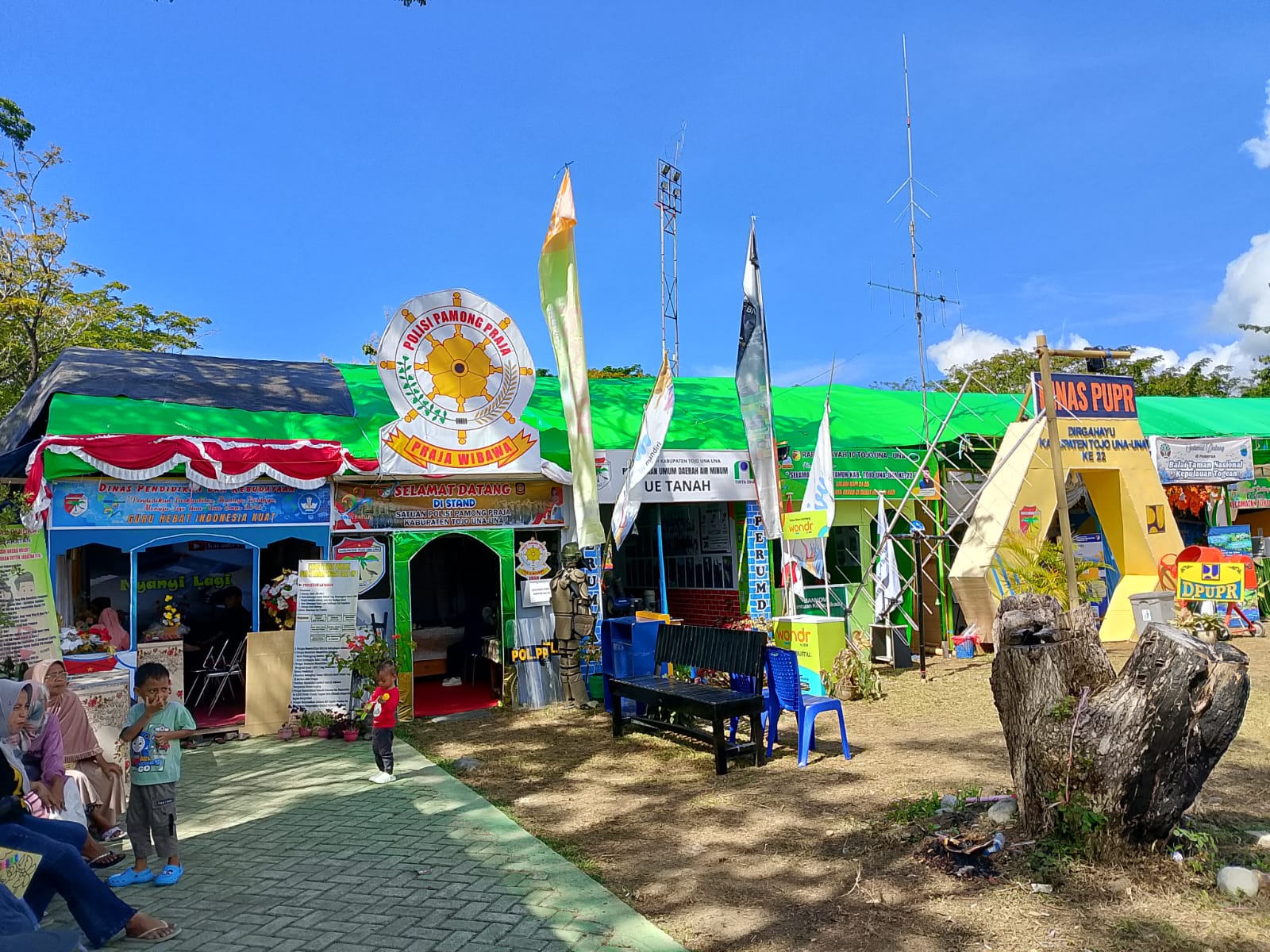 IKNews, TOUNA – Stand pameran pembangunan dan UMKM di Lapangan Alun-Alun Kota Bumi Mas Jalan Merdeka, Kelurahan Uemalingku, Kecamatan Ratolindo tetap ramai dipadati pengunjung setiap hari dalam rangka HUT ke-22 Kabupaten Tojo Una-Una.