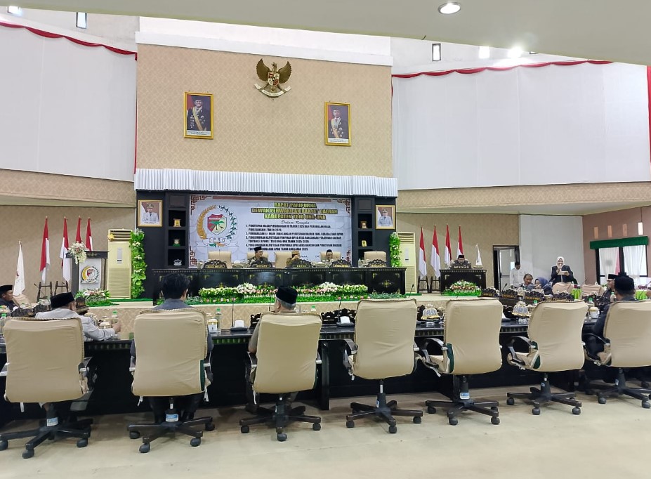 Gambar: Sekretaris Daerah Tojo Una-Una, Alfian Matajeng menyampaikan pandangan pemerintah daerah terhadap Ranperda Perizinan Berusaha Berbasis Risiko dalam Sidang Paripurna DPRD Touna. Ruang Sidang DPRD Tojo Una-Una, Rabu, 8 Oktober 2025. Foto : Budi/IKN.