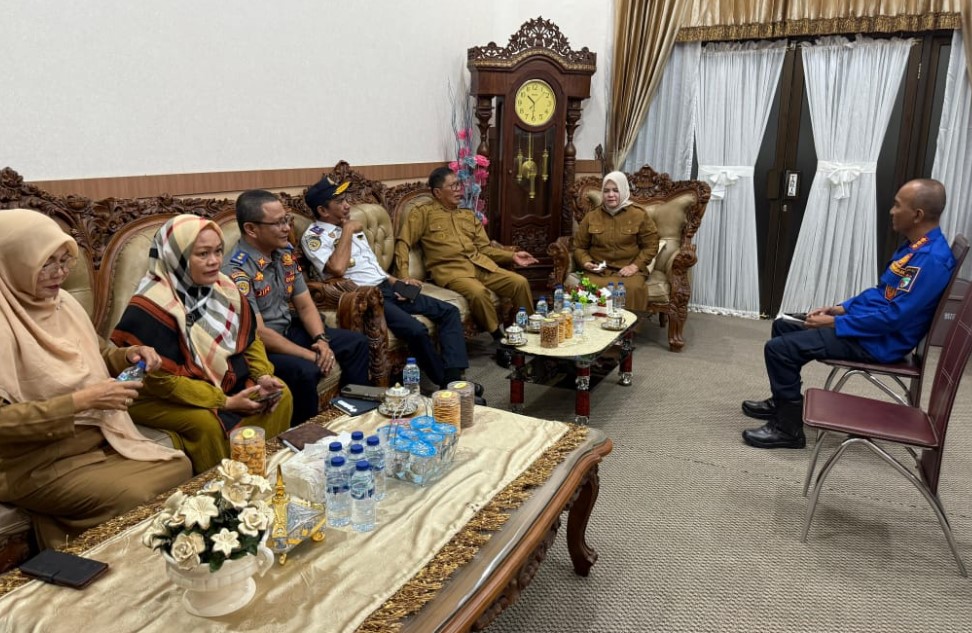 Wakil Bupati Tojo Una-Una, Hj. Surya Lapasiri, S.Sos., M.Si, menerima langsung kunjungan Wakil Bupati Poso, H. Soeharto Kandar, bersama Kepala Dinas Perhubungan Poso, Yunirson Penyami, dan jajarannya di ruang kerja Wakil Bupati Tojo Una-Una, Selasa (21/10/2025).