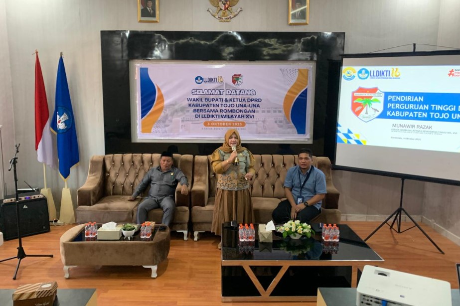 IKNews, GORONTALO — Pemerintah Kabupaten Tojo Una-Una mulai mengambil langkah konkret dalam menjawab tantangan keterbatasan akses pendidikan tinggi di wilayahnya. Melalui audiensi resmi dengan Lembaga Layanan Pendidikan Tinggi (LLDIKTI) Wilayah XVI di Gorontalo, Pemkab menegaskan komitmennya dalam mempercepat pendirian politeknik berbasis potensi lokal.