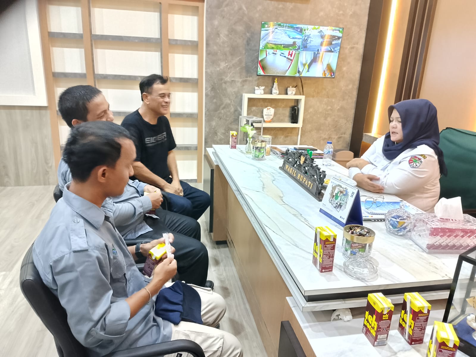 Gambar: Wakil Bupati Hj. Surya Lapasiri berdiskusi dengan tim Adipura KLHK RI mengenai kesiapan daerah menghadapi penilaian kebersihan kota Ruang Kerja Wakil Bupati Tojo Una-Una, Jumat, 14 November 2025. (Foto: Budi Dako/ikn)