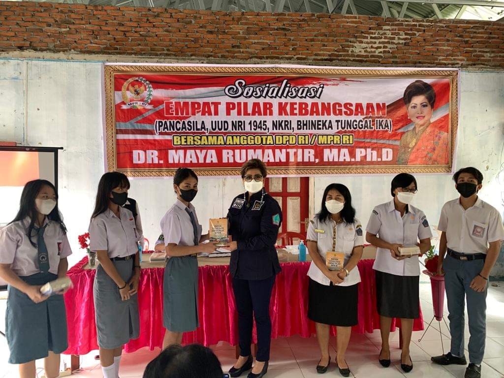 INFOKINI.NEWS- Sosialisasi Empat Pilar Kebangsaan (Pancasila, UU NRI 1945, NKRI, Bhineka Tunggal Ika) oleh Anggota DPD RI /MPR RI, DR.Maya Rumantir, MA.Ph.D dilaksanakan di SMA Negeri 6 Manado.