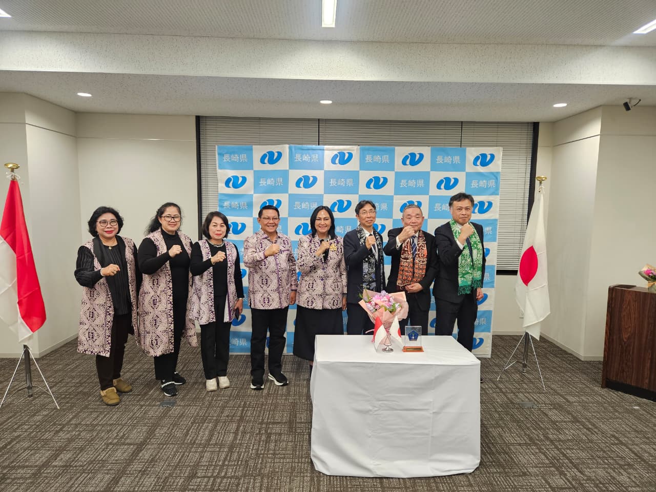 IKNews, NAGASAKI — Suasana hangat terasa sejak rombongan Pemerintah Sulawesi Utara memasuki kantor Pemerintah Prefecture Nagasaki, tempat pertemuan resmi digelar pada Senin pagi, Dalam kunjungan kerja itu, First Lady Sulawesi Utara sekaligus Ketua Dekranasda Sulut, Anik Yulius Selvanus, memimpin langsung delegasi dan menyampaikan sejumlah pesan penting dari Gubernur Yulius Selvanus.
