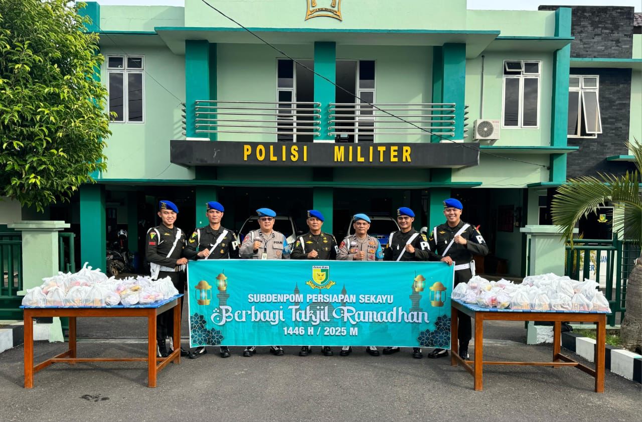 Dansubdenpom Persiapan Sekayu Lettu Cpm Reza Pahlevi SH mengatakan, kegiatan sinergitas TNI-Polri dalam rangka pembagian takjil bersama Propam Polres Musi Banyuasin, di Bulan Suci Ramadhan 1446 H di depan Kantor Subdenpom Persiapan Sekayu.