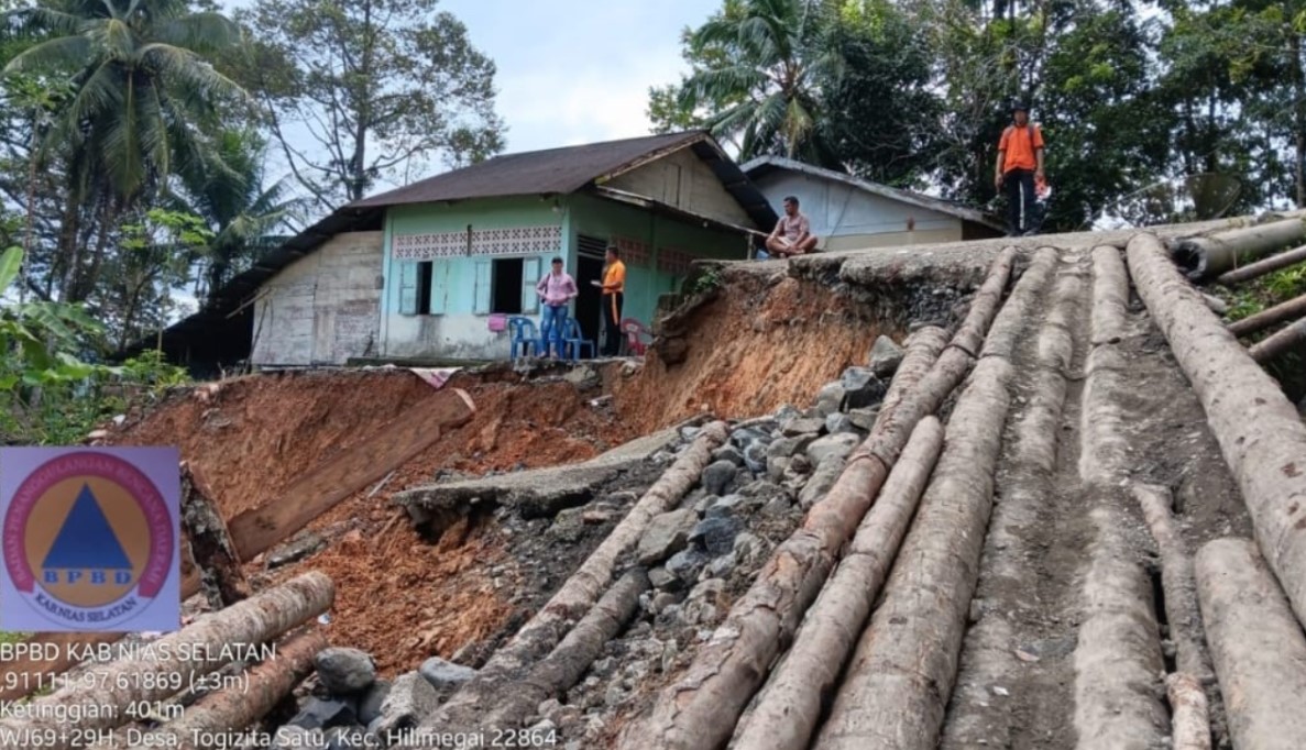 Tim BPBD yang turun ke lapangan mencatat kerusakan cukup luas, mulai dari infrastruktur jalan hingga permukiman warga. Salah satu titik terparah berada di ruas Jalan Togizita yang putus total. Kondisi ini langsung memutus akses utama masyarakat di Kecamatan Hilimegai dan menyebabkan sejumlah desa terisolasi.