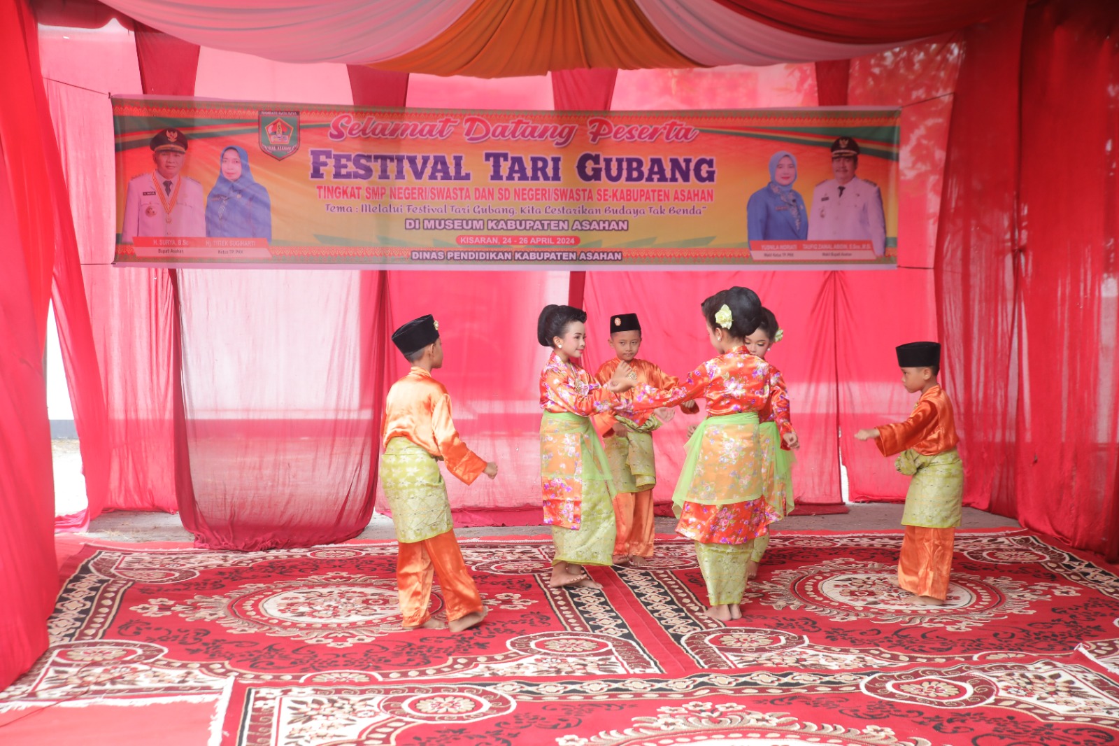 IKNews, ASAHAN – Sebanyak 14 Tim yang berasal dari jenjang SD dan SMP di Kabupaten Asahan, mengikuti Festival Tari Gubang dengan tema “Melalui Festival Tari Gubang Kita Lestarikan Budaya Tak Benda” , yang diselenggarakan di Museum Gedung Juang “45 Kisaran, Kamis (25/04/2024). Festival ini dibuka langsung oleh Bupati Asahan H. Surya, BSc.Kadis Pendidikan Kabupaten Asahan H. Supriyanto, M. Pd melaporkan, saat ini kesenian lokal mulai diminati generasi muda, sehingga diperlukan tindakan pelestarian. Untuk itu Dinas Pendidikan Kabupaten Asahan melaksanakan festival Tari Gubang Tingkat SD dan SMP Negeri/Swasta se Kabupaten Asahan yang merupakan Tarian khas Asahan.