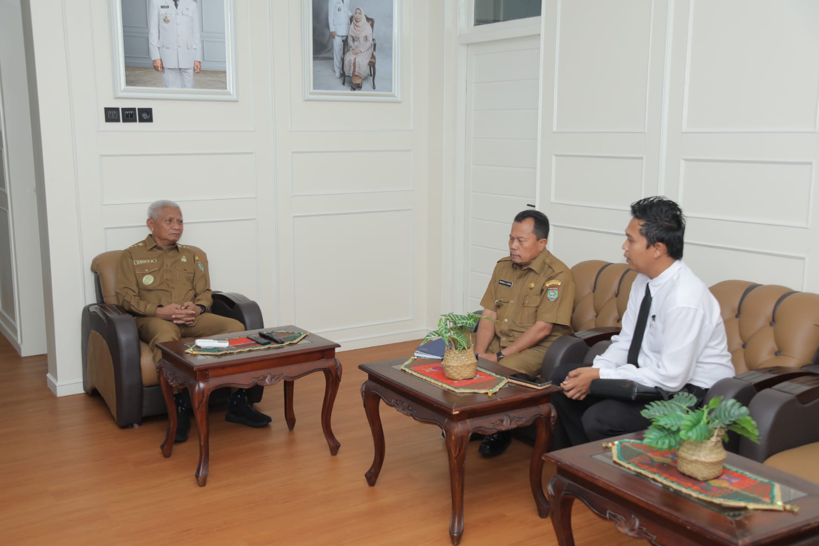 IKnews, ASAHAN – Bupati Asahan, H. Surya bersama dengan Asisten Administrasi Umum dan Kepala Dinas Kominfo Kabupaten Asahan menerima audiensi General Manager Hotel Antariksa Kisaran, Liansyah di Ruang Kerja Rumah Dinas Bupati Asahan, Selasa (11/4/2023).