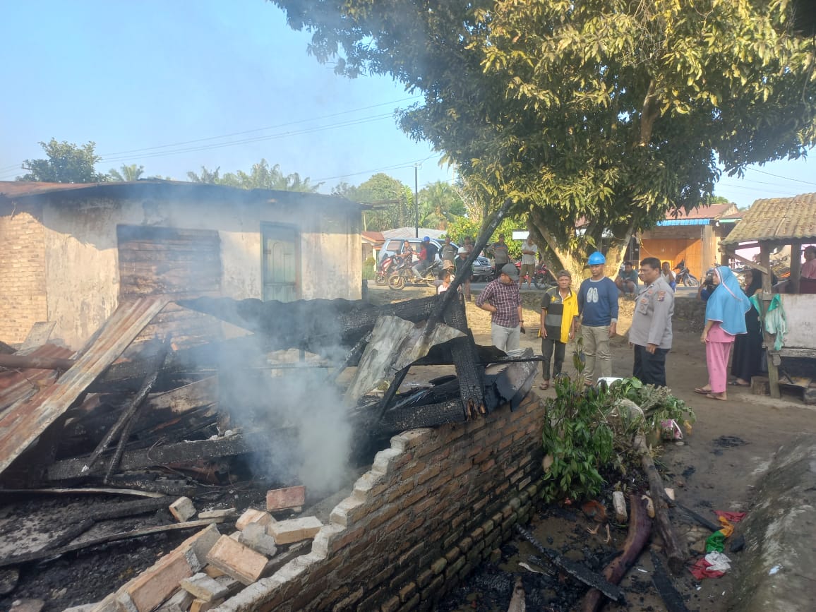 “Karena api terlalu besar, maka seluruh rumah dan isinya hangus terbakar. Untuk sementara diduga api berasal dari ruangan tengah, penyebabnya akibat arus pendek listrik (korsleting),” tegasnya.