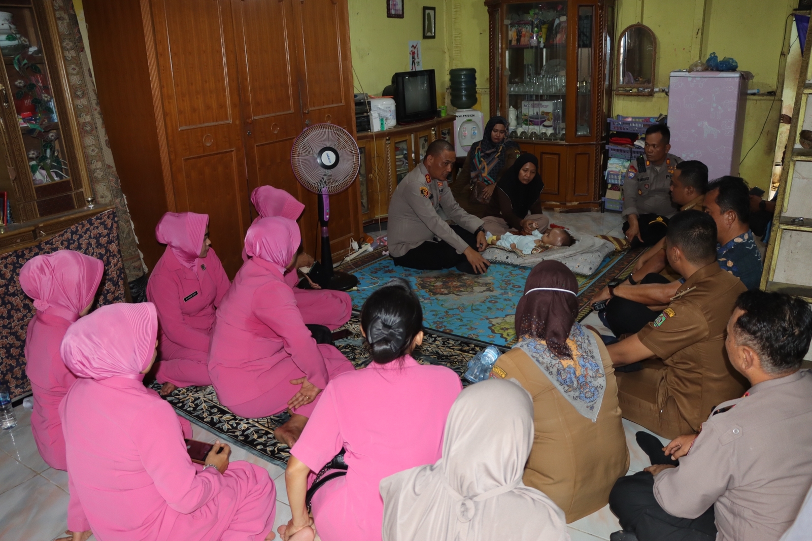 IKnews, ASAHAN – Kapolres Asahan menjenguk Raihan Hafidzah umur 7 bulan warga Jalan Husni Thamrin Gang Keluarga Lingkungan I Kelurahan Selawan Kecamatan Kota Kisaran Timur Kabupaten Asahan pengidap penyakit hidrosefalus.